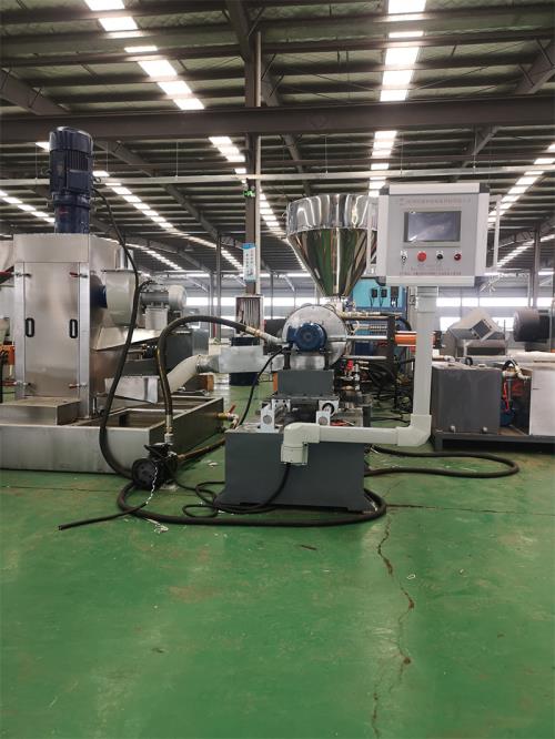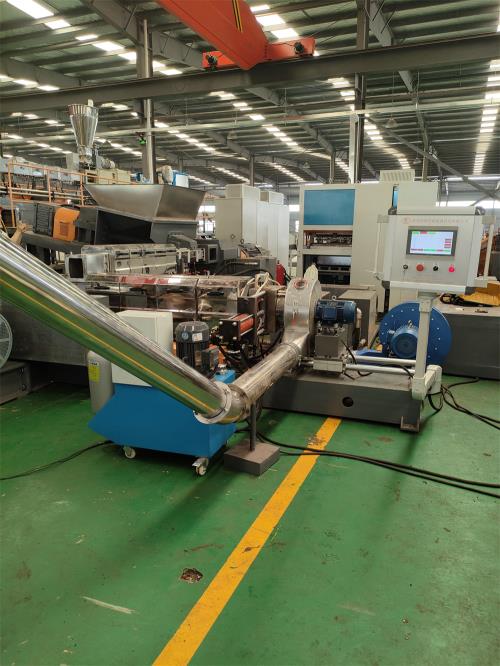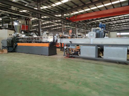 雙螺桿造粒代加工_雙螺桿造粒代加工_佳德塑機JDL-75D雙螺桿水拉條機組一、系統(tǒng)機組技術(shù)參數(shù)Ⅰ、機器顏色:主機為公司標色;電柜為電腦色Ⅱ、造粒工藝:雙螺桿計量式喂料——-JDL-75D雙螺桿擠出機---—液壓板式換網(wǎng)——拉條機頭----6米不銹鋼水槽-----吹干機----龍門切粒機------2.5米不銹鋼振動篩--------成品料倉------主機采用:PLC控制Ⅲ、作業(yè)物料:PE交聯(lián)電纜料皮回收造粒產(chǎn) 雙螺桿造粒代加工 量:300-500公斤/小時(作業(yè)條件不同,產(chǎn)量稍有不同) 要 求:電壓380V 60HZ設(shè)備特點:整套設(shè)備是環(huán)保型,設(shè)備不需要接外循環(huán)水系統(tǒng);自帶循環(huán)冷卻統(tǒng)是我公司專利產(chǎn)品(發(fā)明專利號:CN201911312134.6)1.最大好處:整套0水排放;無水污染;環(huán)保好過2.雙螺桿齒輪箱冷卻采用:采用環(huán)保冷卻系統(tǒng)(環(huán)保型:發(fā)明專利號:CN201911312134.6)不需要接外循環(huán)水冷卻,不用徘外水;采用閉環(huán)循環(huán)系統(tǒng),不用擔(dān)心長時間使用水冷卻會產(chǎn)生水垢把冷卻器堵住,導(dǎo)致齒輪箱損壞3.雙螺桿主機水箱冷卻系統(tǒng)采用:采用環(huán)保冷卻系統(tǒng)(環(huán)保型:發(fā)明專利號:CN201911312134.6)不需要接外循環(huán)水冷卻,不用徘外水;采用閉環(huán)循環(huán)系統(tǒng)4. 不銹鋼水槽:一臺,L=6米,加寬加深,槽體為不銹鋼材質(zhì);水槽與吸干機過度體一件;不銹鋼材質(zhì),水槽熱水經(jīng)過濾器到環(huán)保型冷卻器;